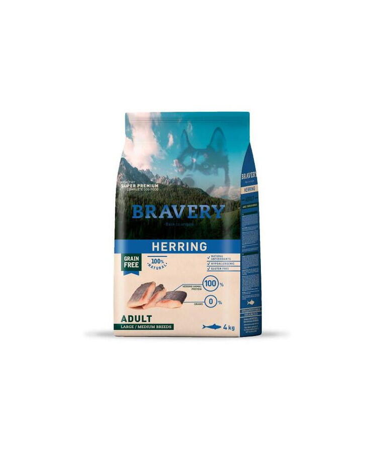 Beneficii: Heringul este un ingredient cu multiple beneficii datorita continutului sau de Omega 3 (EPA si DHA). Are proprietati cardiovasculare si anti-arteriosclerotice. Imbunatateste supletea, densitatea si stralucirea blanii, in plus, contribuie la dezvoltarea creierului si mentinerea unei bune sanatati mentale. Aceasta reteta este produsa din ingrediente 100% naturale de inalta calitate si nu contine coloranti, arome sau conservanti artificiali. Este bogata in proteine naturale si saraca in carbohidrati deoarece nu contine cereale (nu contine gluten in compozitie), este hipoalergenica si mono-proteica, cu un aport de 100% carne proaspata de hering. Este ideala pentru cainii adulti (cu varsta de peste 1 an) de talie medie si mare (cu greutatea de peste 12kg), sau pentru cei sensibili care prezinta intolerante sau alergici alimentare