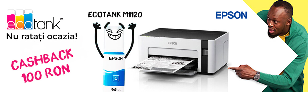Imprimanta inkjet mono CISS Epson M1120, dimensiune A4, viteza max 32ppm, rezolutie printer 1440x720dpi, alimentare hartie 150 coli, volum maxim printare : 15000pagini/luna, interfata: USB 2.0, Wireless, consumabile: Ecotank MX1xx negru XL (6k/pag.), MX1xx negru L (2k/pag.),cerneala 6k/pag inclusa, greutate: 3.7kg, culoare echipament: alb/negru.