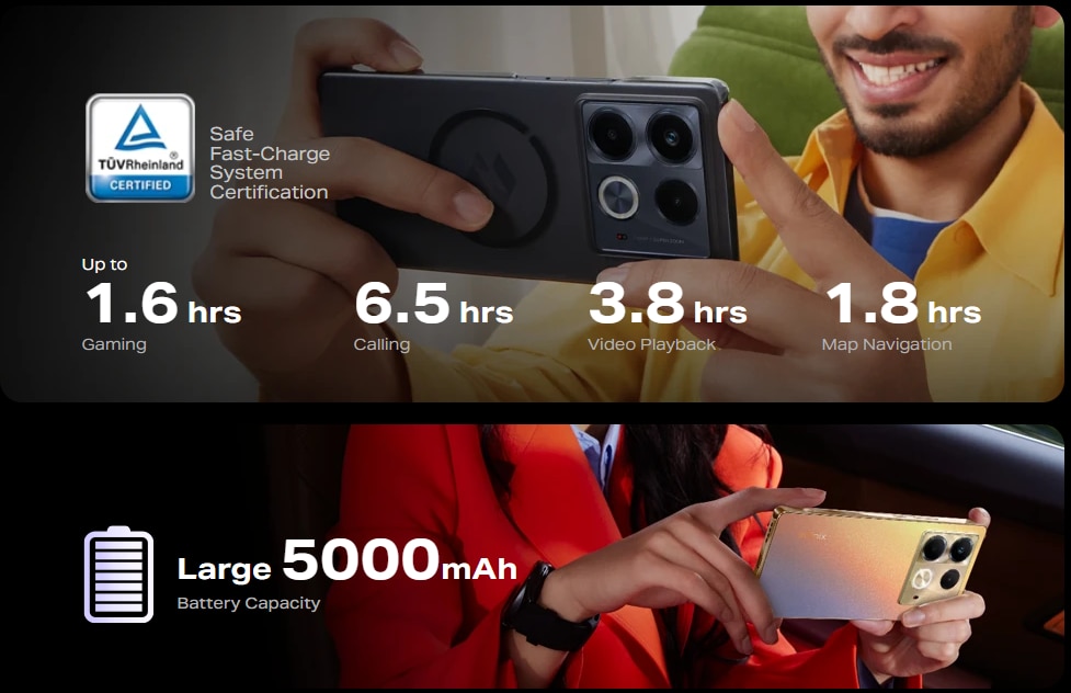 Porniti intr-o clipita cu trei moduri personalizate pentru a va potrivi preferintele. Bateriile Infinix de 5000 mAh cu densitate energetica ridicata, impreuna cu caracteristici de siguranta robuste, garanteaza o incarcare sigura. Chiar si dupa 1600 de cicluri, fiti siguri ca bateria dvs. va dura o zi intreaga cu o singura incarcare.